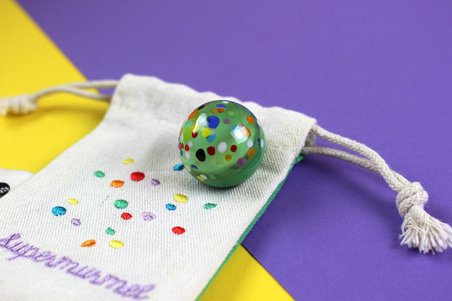 Ava & Yves - Supermurmel in grün mit Konfettisteinchen im hochwertigen Jutebeutel