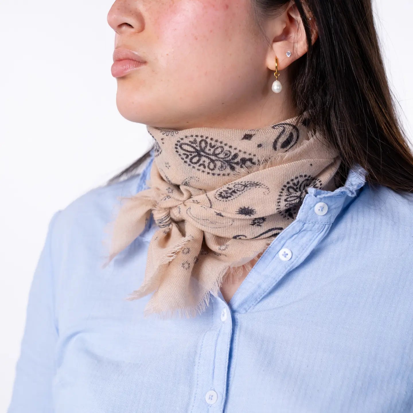 Stadtkinder - Bandana Tuch in Beige shwarz 70 x70 100 % Leinenwolle