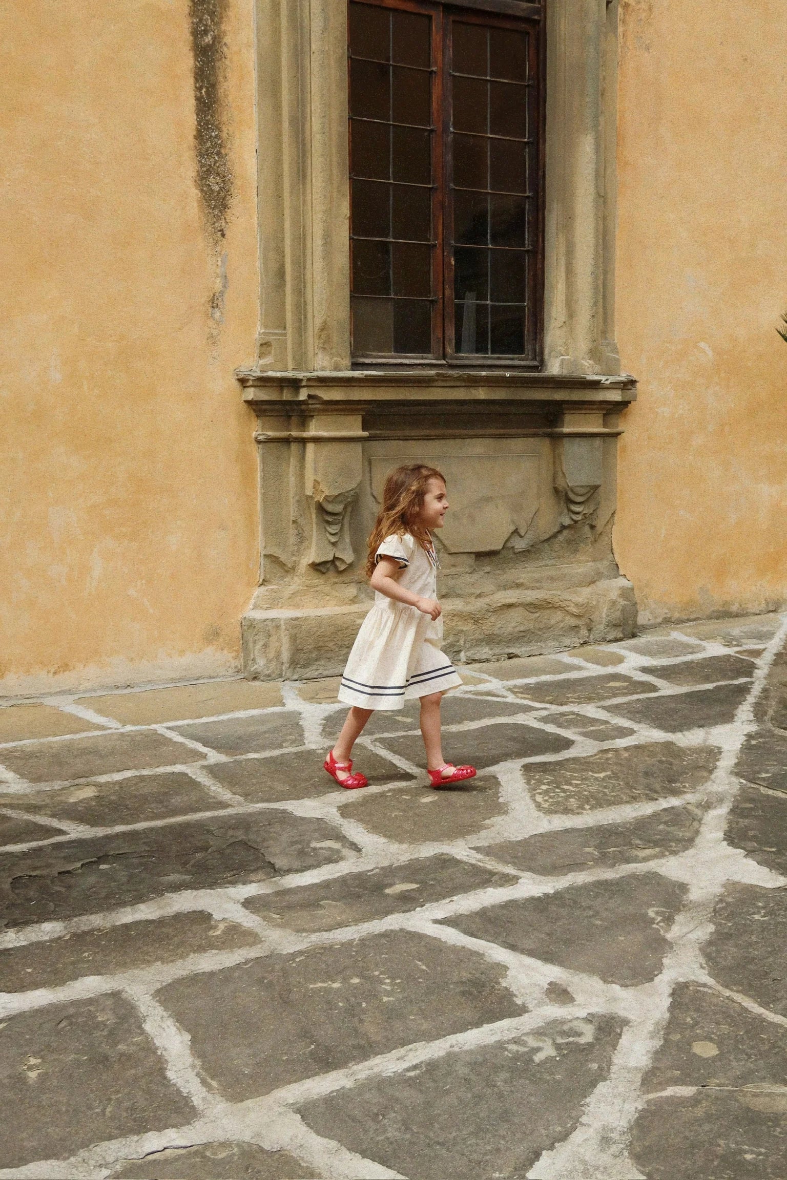 Kleid im Matrosen-Stil mit einer weichen Silhouette, einem übergroßen Kragen und Puffärmel. Mit Raffungen an der Taille für eine schmeichelhafte Silhouette.