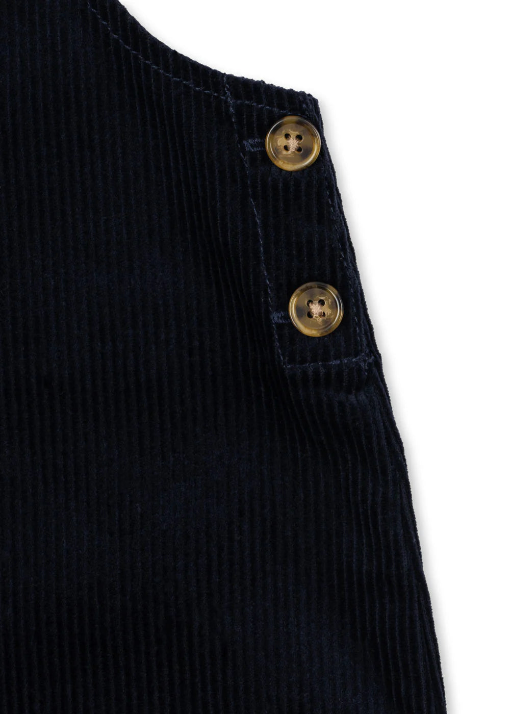Latzhose aaus weichem Cord . Mit klassischem Design mit Riemen und Schnallenverschluss vorne und Knöpfen an den Seiten für einfaches Anziehen.