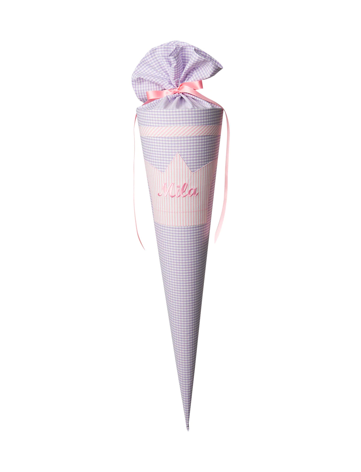 Paula & Ferdinand - Schultüte 👑Vichy Karo Flieder - Rose, personalisiert inkl. Füllwatte