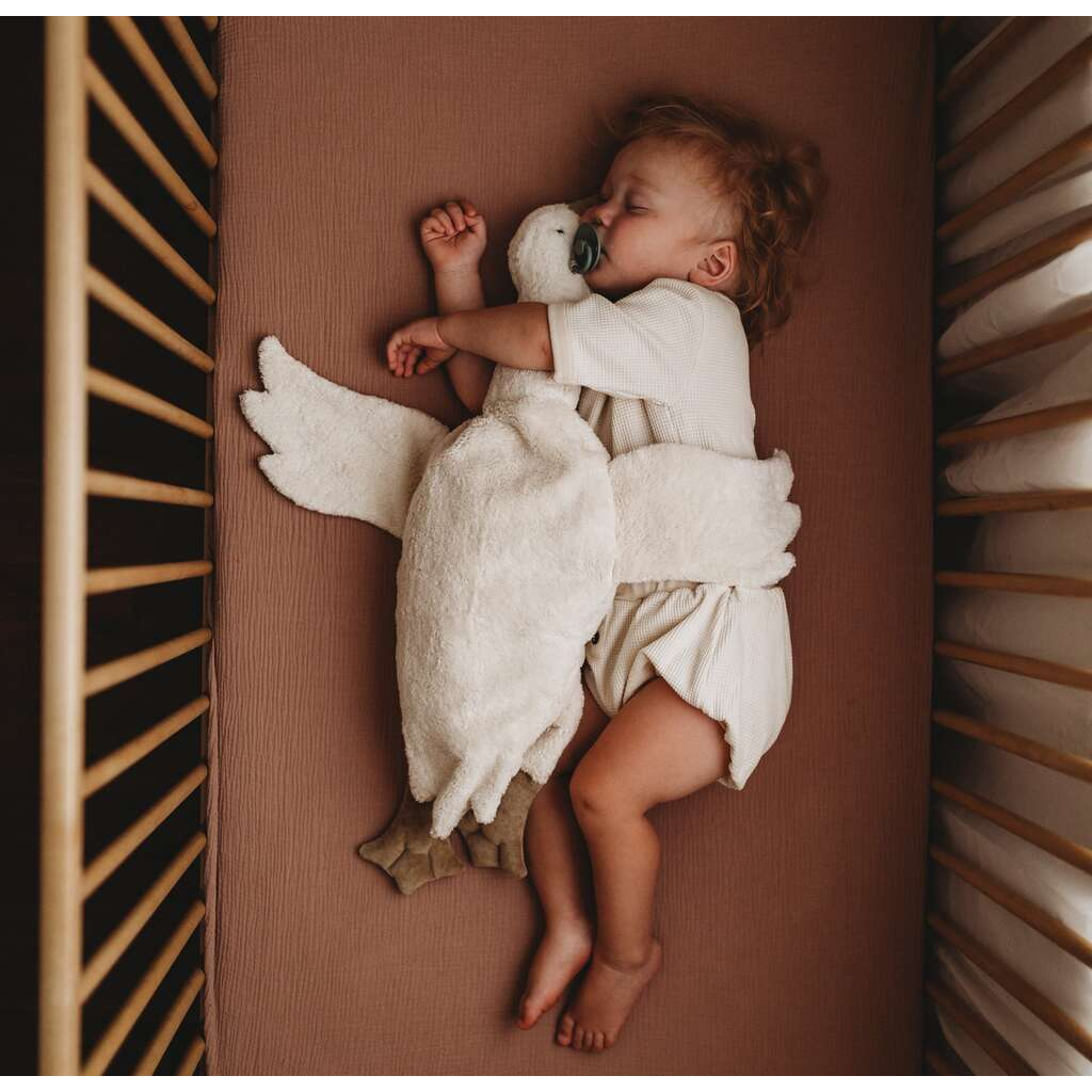Das große Wärmekissen in Gänseform von Senger Naturwelt vereint Kuscheln und Komfort auf elegante Weise. Ideal zum Wärmen oder Kühlen ist es sowohl ein charmanter Begleiter für Kinder als auch eine stilvolle Raumdekoration für Erwachsene. Gefüllt mit GOTS-zertifizierter Schafschurwolle sowie einem Körnerkissen aus Europa und bezogen mit nachhaltiger Baumwolle verbindet sie Umweltfreundlichkeit mit hochwertigem Design.