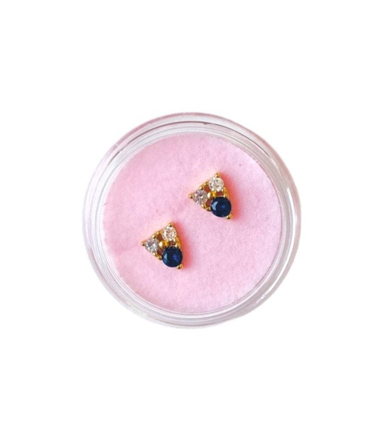 Ohrstercker mit großem Zirkonia in Dunkelblau kombiniert mit hellblau und weiss.